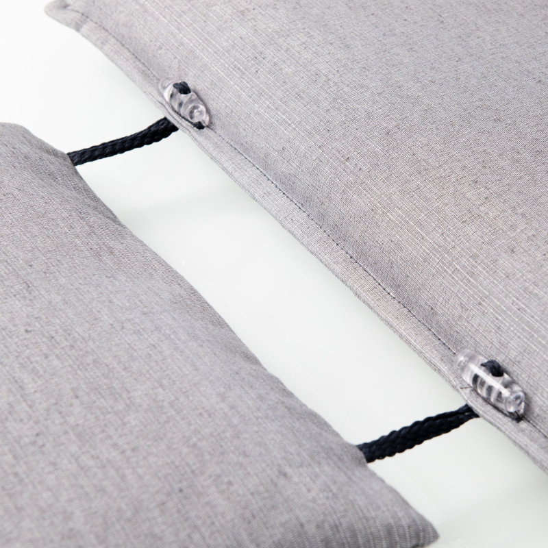 Polstr na zahradní lehátko řady ELEGANT je v provedení s obšitým lemem. Uchycení je pomocí posuvné spony. Díky sponě si můžete nastavit velikost dle rozměru a druhu židle, spona je pevná a nevytahuje se. Upevnění sedáku je pomocí dvou tkaniček v ohybu polstru. Polstr je v provedení se zipem, potah je snímatelný a je možnost ručního praní.