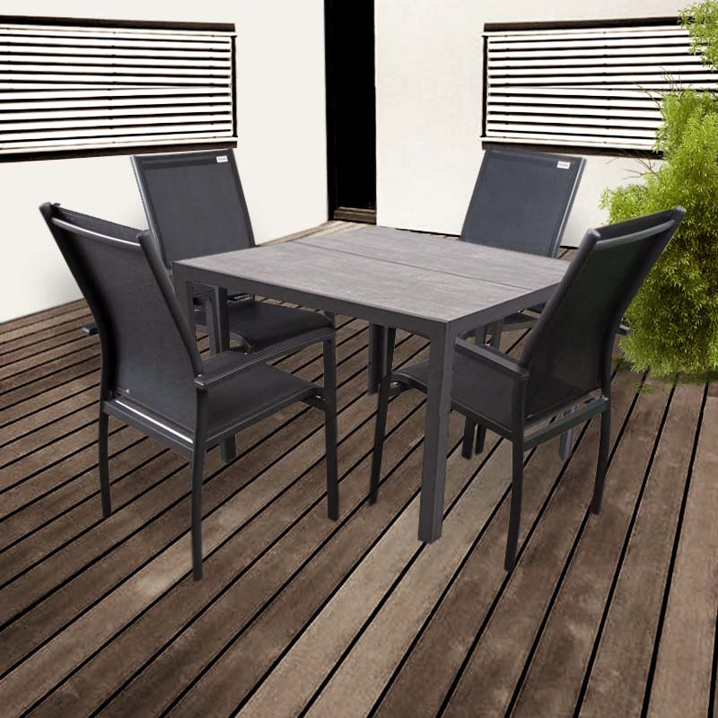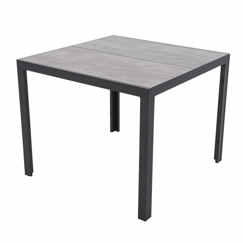 Stůl Bergamo zase zaujme svou krásnou keramickou deskou žíhané šedé barvy. Tu doplňuje odolná hliníková konstrukce ošetřená práškovým nástřikem v antracitové barvě, který stůl chrání před korozí a výrazně prodlužuje jeho životnost.