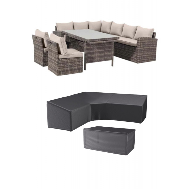 Odolná krycí plachta z vysoce kvalitního polyesteru ochrání Váš nábytek před světlem, deštěm a nečistotami. Používáním ochranného krytu na zahradní nábytek výrazně prodloužíte jeho životnost. Před použitím umístěte jednotlivé kusy sestavy co nejblíže k sobě a přikryjte obalem. Pro lepší odtok dešťové vody je dobré umístit mezi stůl a krycí obal např. kyblík tak, aby vznikl vyvýšený prostor a voda mohla samovolně stékat po stranách. Pro lepší uchycení ve větrném počasí jsou v rozích plachty oka s tkanicemi pro uchycení k nábytku. Krycí potah je velmi vhodné využít i při zazimování.