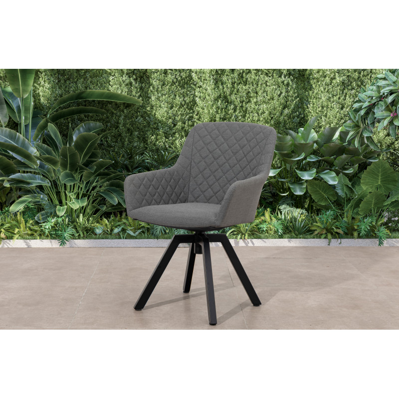 Otočné zahradní křeslo Paris LIKA-TEX® šedé patří mezi novinky zahradního nábytku značky DOPPLER. Designové lehké křeslo má stabilní hliníkovou konstrukci v antracitové barvě. Pohodlné sezení na tomto křesle zaručí měkké polstrování s ozdobným prošíváním z vysoce kvalitní textilie LIKA-TEX®. Ta umožňuje nechávat křeslo celoročně venku, nehledě na počasí. Křeslo je otočné o 360°.
